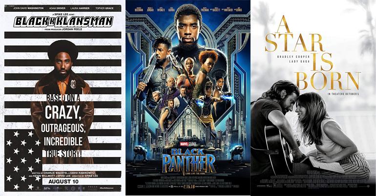 A Star Is Born (Nace una estrella, 2018), Black Panther (Pantera negra, 2018), BlacKkKlansman (Infiltrado del KKKlan, 2018)