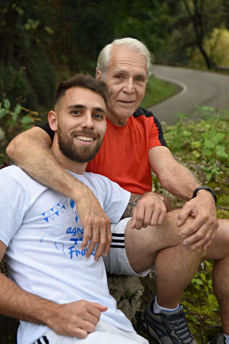 A sus 26 años, el joven dirige una de las panaderías de la familia mientras prueba suerte como futbolista: ha jugado para un equipo estadounidense y hace poco lo llamaron de un club australiano. El abuelo quiere que viaje. Que cumpla sus sueños. Que no se rinda. Que persevere. Que sea disciplinado. Que corra con fuerza. El nieto lo oye y dice: "a las cinco de la mañana, mi abuelo anda corriendo por la Perón... como si nada. Lo admiro muchísimo. Admiro su pasión. Admiro la facilidad y la felicidad con las que hace todo".