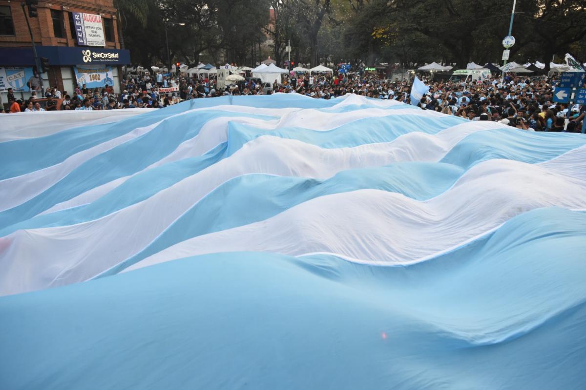 La movilización de simpatizantes comenzó temprano. Alrededor de las 17 ya se podían ver algunas camisetas celestes y blancas, algunas banderas y las mini reuniones de amigos empezaban a ser cada vez más numerosas. Con el correr de los minutos los hinchas comenzaron a desplegar todo su cotillón. Una bandera de casi 50 metros, pilusos, papelitos, sombrillas y por supuesto, instrumentos de percusión. Dos detalles para destacar: el buen comportamiento de los hinchas y el rápido accionar de la Policía para cortar calles y guiar a la caravana.