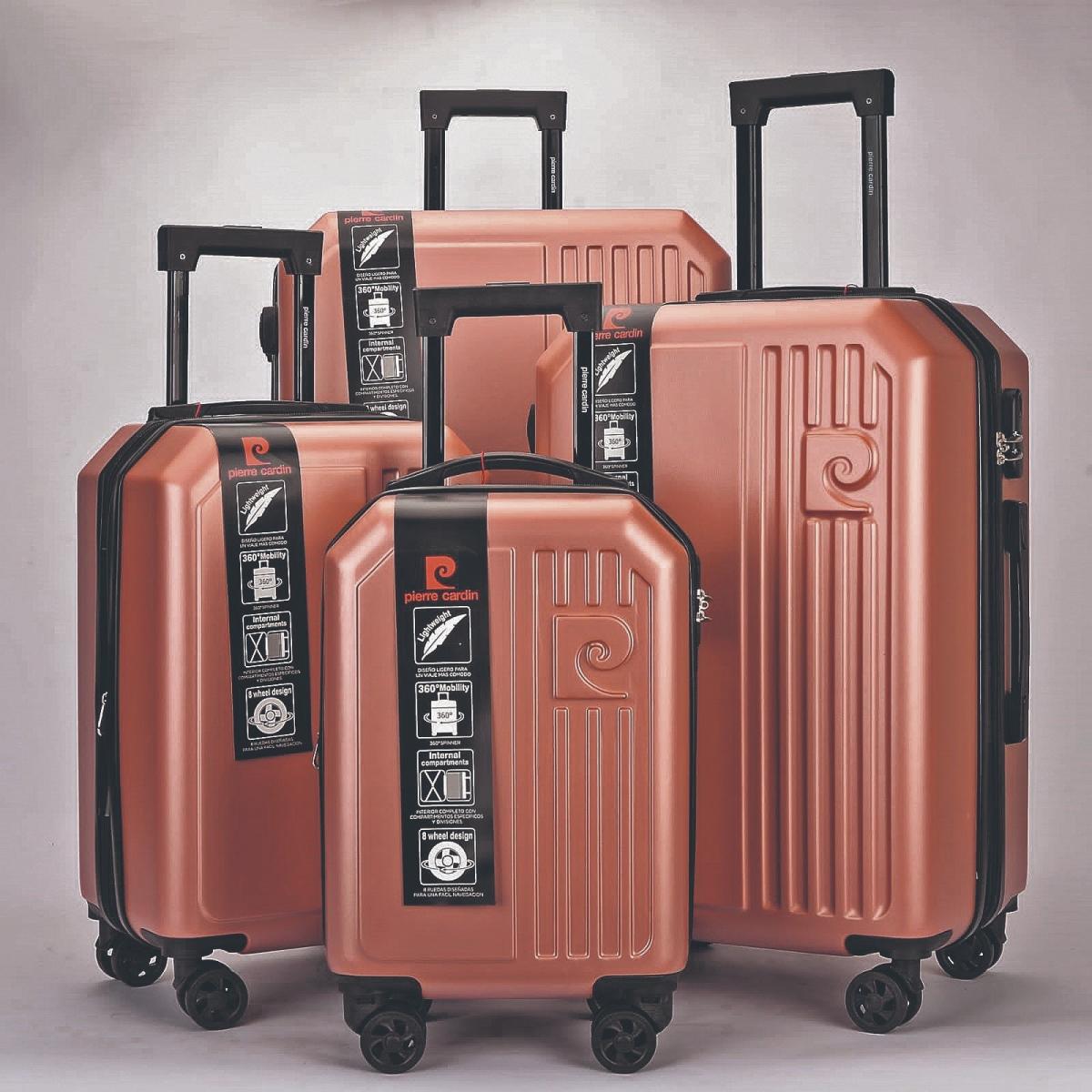 En este conjunto de valijas de cuatro tamaños, la más pequeña es la que tiene una particularidad: es la medida exigida por algunas líneas de bajo costo o low-cost. La valija que le sigue en tamaño también puede ir en cabina de los aviones de línea. Son de fibra de plástico ultra resistente y con ocho ruedas.