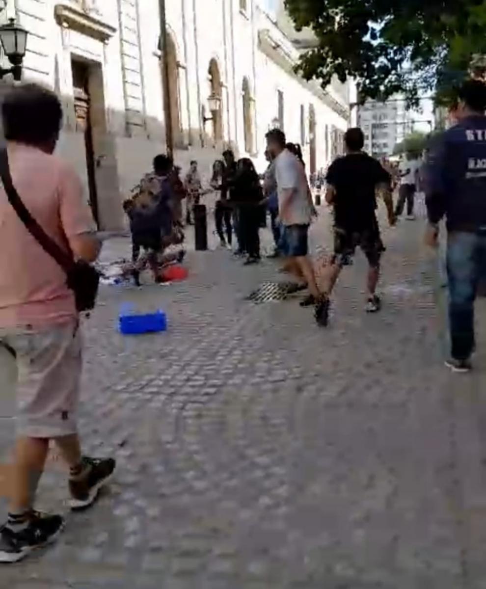 Primero el griterío, después los insultos y por último una pelea. La peatonal de la calle Congreso, primera cuadra, en la capital tucumana fue escenario de un incidente entre vendedores ambulantes.