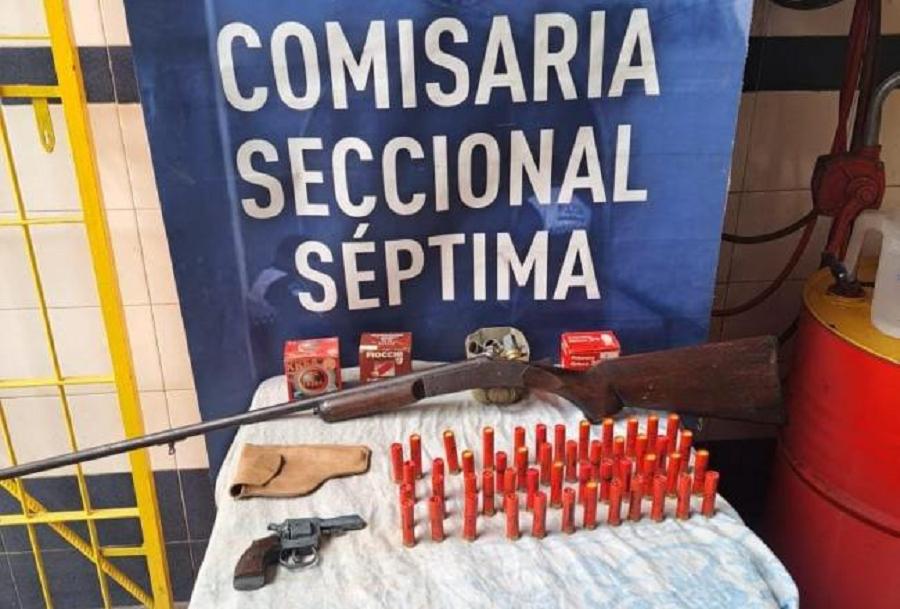 En el marco de una investigación de un robo a punta de pistola ocurrido en la zona de Villa Luján, en la Capital, los efectivos de la Comisaría Séptima secuestraron este martes una escopeta, un revólver calibre 22 y 49 cartuchos calibre 32 en el domicilio de uno de los sospechosos.