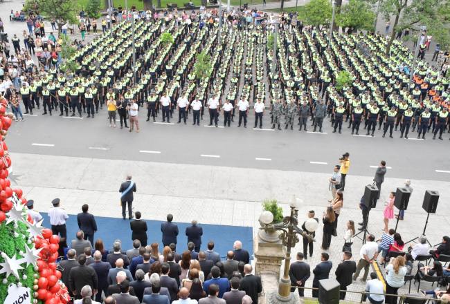“Deben tener un mejor y mayor accionar dentro de la provincia. Necesitamos que estén en la calle, prevenir el delito, llegar antes que el delincuente, que los hechos delictivos no se produzcan y si así sucede que se actúe rápido descubriéndolos, desarticulando y entregando a la Justicia a los causantes”, expresó el gobernador Osvaldo Jaldo durante el discurso en el cual promovió los ascensos de 2.758 suboficiales de la Policía. El acto se llevó a cabo en la plaza independencia, frente a la Casa de Gobierno.