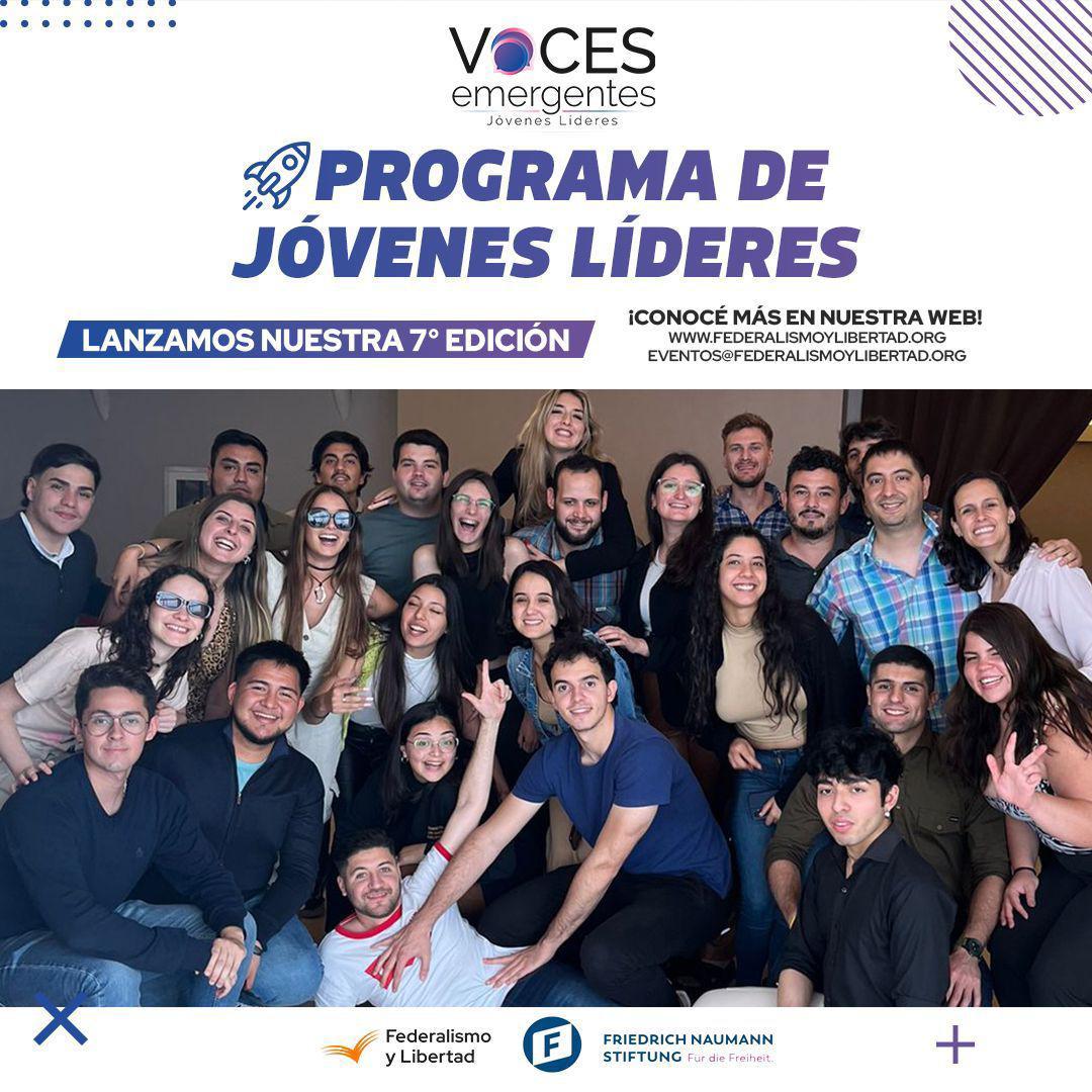 La Fundación Federalismo y Libertad se complace en anunciar el lanzamiento de la séptima edición de su exitoso programa “Voces Emergentes: Programa de Jóvenes Líderes”. Este programa, que se ha convertido en un referente en la formación de dirigentes jóvenes en Tucumán, busca fomentar el desarrollo de aptitudes y habilidades en aquellos interesados en desempeñarse como líderes en las distintas jurisdicciones de la provincia. Además, promueve un espacio de encuentro e intercambio con destacados referentes del ámbito público y privado, impulsando los valores fundamentales de una sociedad democrática.