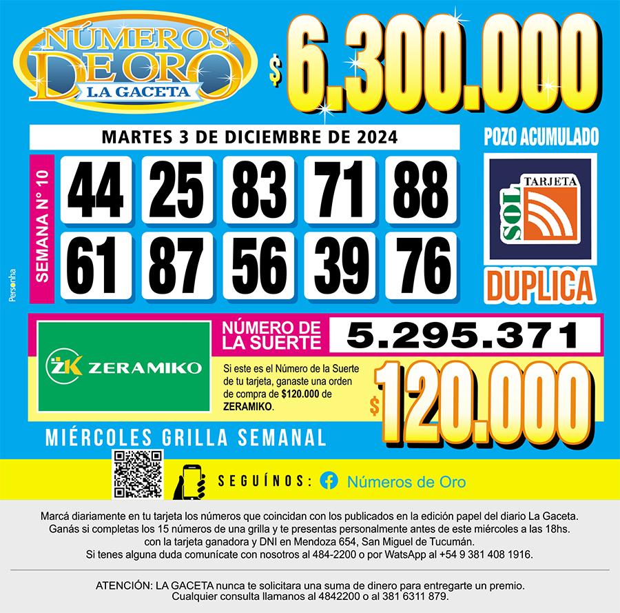 Los Números de Oro de LA GACETA del 3 de diciembre de 2024