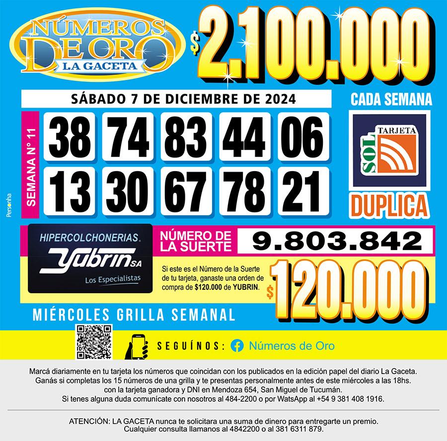 Los Números de Oro de LA GACETA del 7 de diciembre de 2024