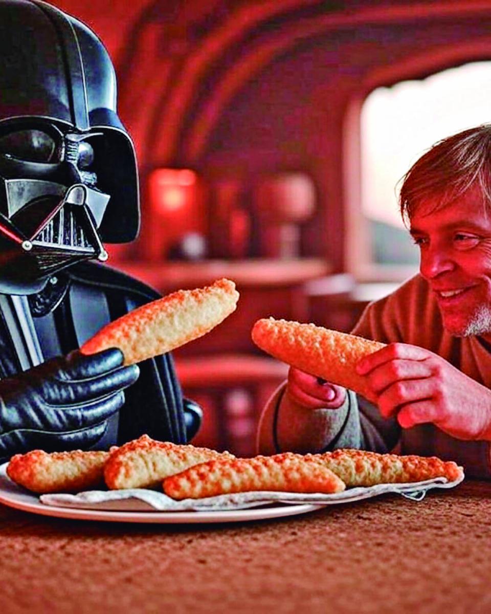 “QUE LA FUERZA TE ACOMPAÑE”. Los personajes de Star Wars comiendo extrañas empanadas tucumanas.