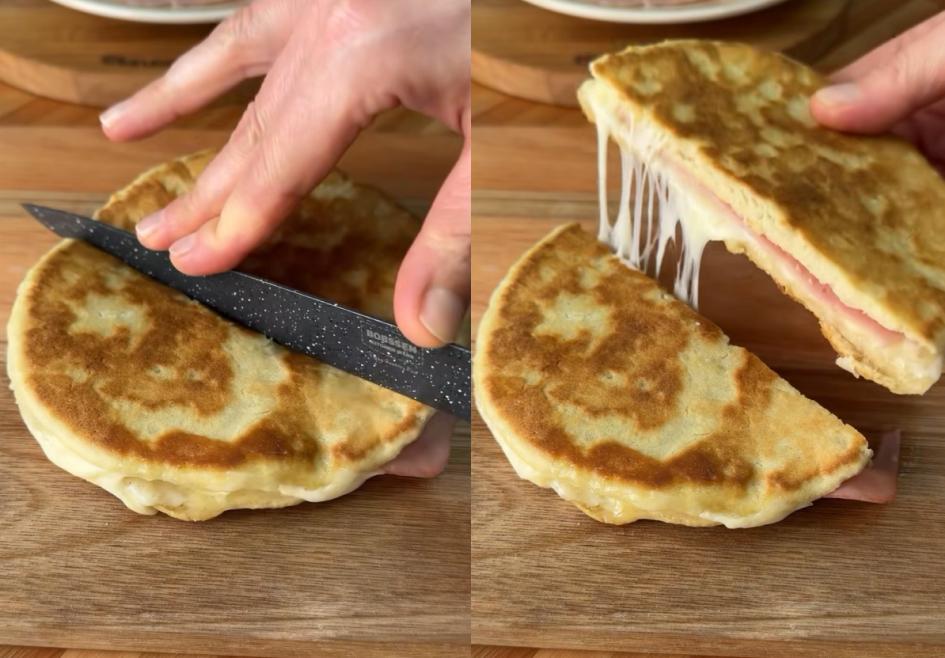 8. Sacar de la sartén, dejar enfriar unos minutos, cortar y rellenar a gusto.