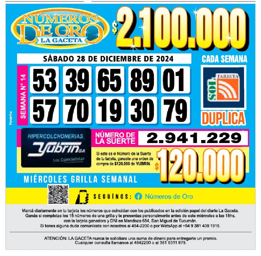 Los Números de Oro de LA GACETA del 17 de diciembre de 2025