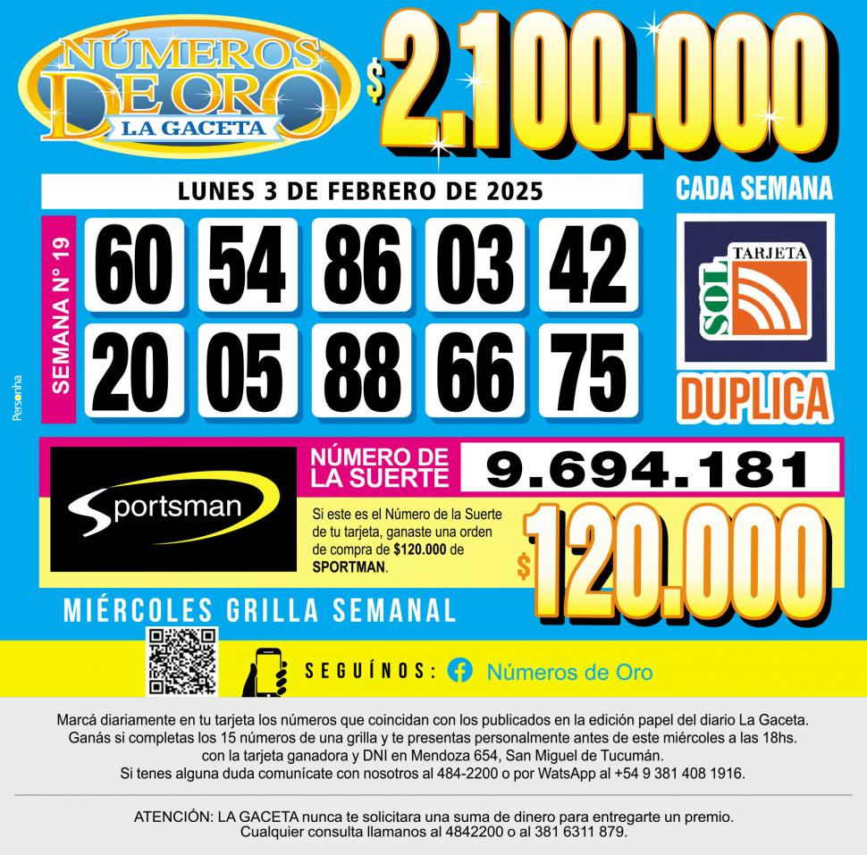 Esta es la grilla completa de los Números de Oro de LA GACETA del 17 de diciembre de 2025