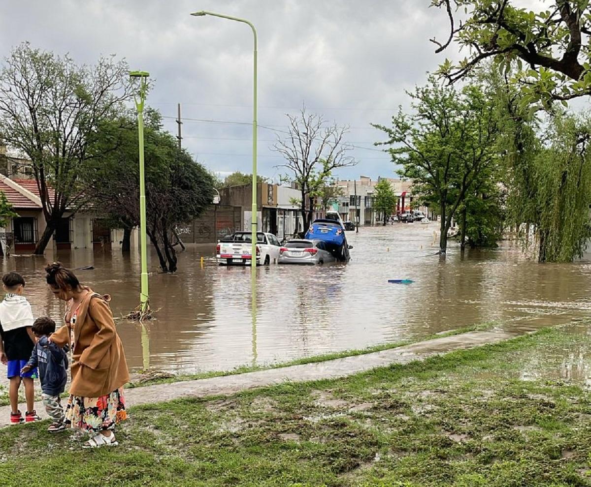 PREOCUPACIÓN. La esposa de Bellone y sus hijos se alejan de las calles, que quedaron colapsadas de autos apilados por el agua.