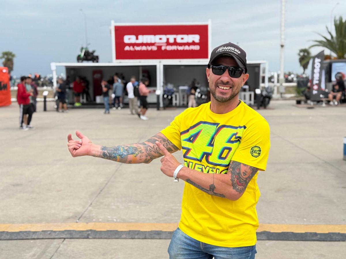Elvio Fernández viajó desde Puerto Madryn, Chubut, hasta Termas de Río Hondo. Lleva puesta una camiseta con el icónico número 46 y no duda en afirmar que Rossi es su piloto favorito. “Era único, un loco dentro y fuera de la pista”, describe.