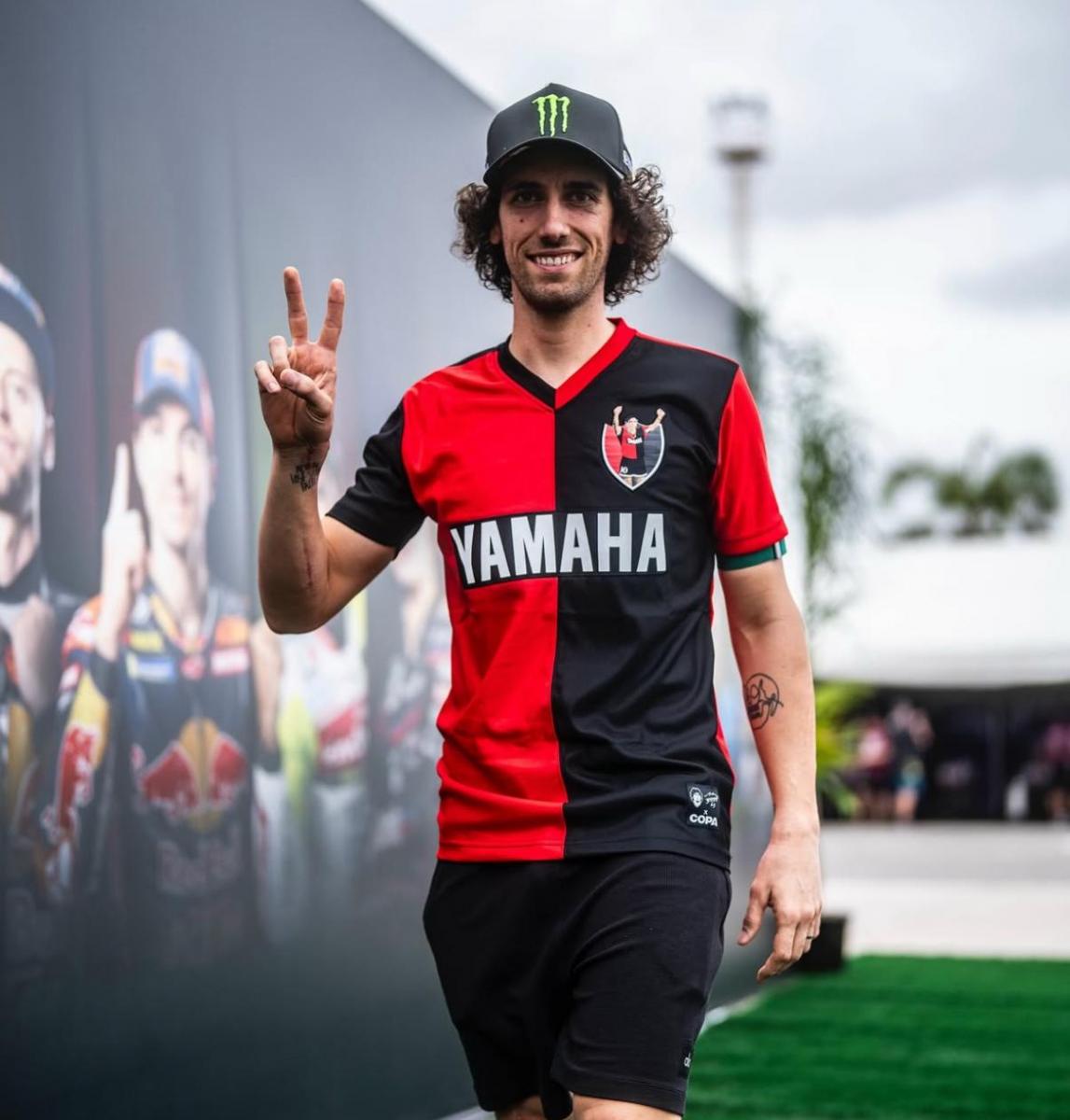 FELIZ. Rins se mostró con la camiseta de Newell´s en el paddock del MotoGP.