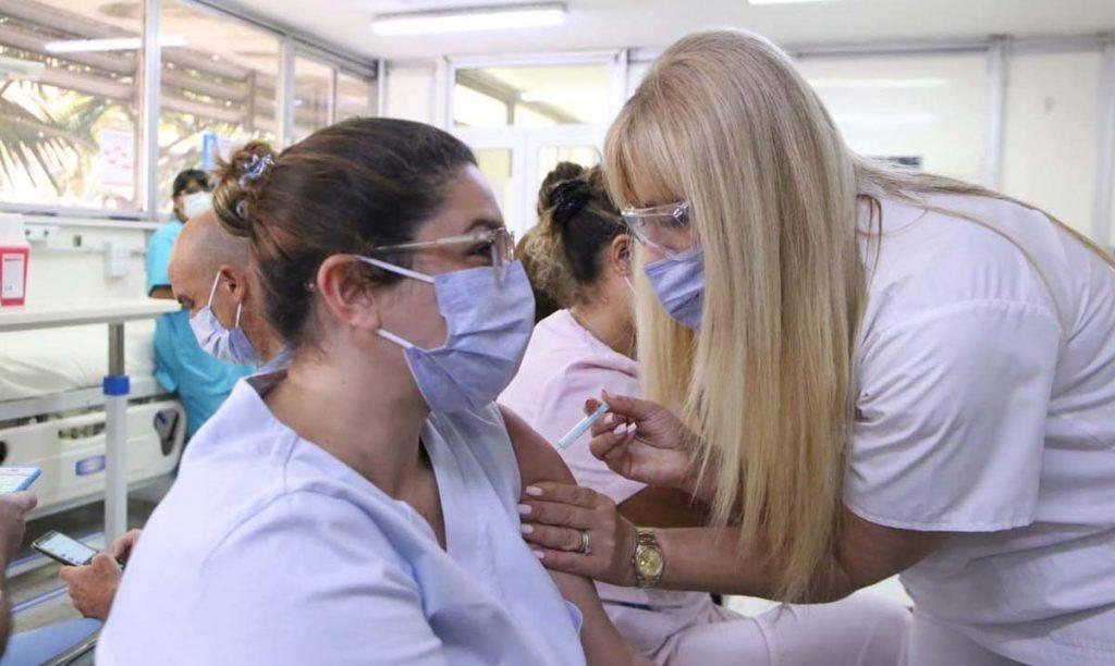EN EL TERRITORIO. Chahla, en su rol de médica y ministra, se encargó de vacunar al personal de salud.