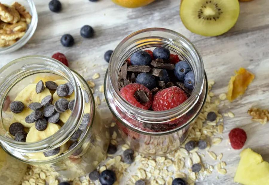 Para preparar este desayuno necesitarás copas de avena, leche o bebida vegetal, cacao amargo, pasta de maní, rodajas de banana y miel o stevia. Mezclá todo en un frasco –a excepción de la fruta– la noche anterior, guardá en la heladera y dejá reposar. A la mañana siguiente, agregá las rodajas de banana.