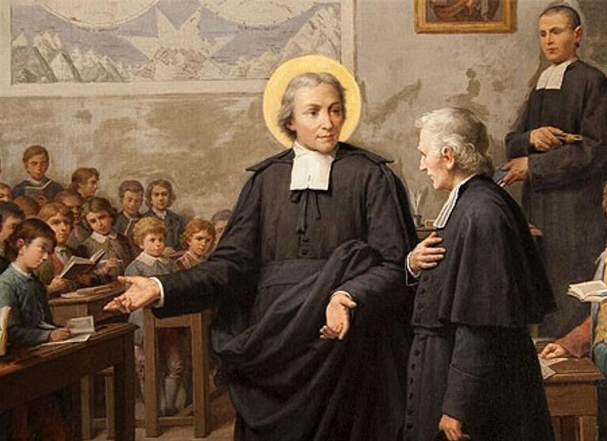 San Juan Bautista de La Salle (1651-1719) dedicó su vida a la formación de maestros y a brindar educación gratuita a los niños más pobres de Francia. Su obra revolucionó el sistema educativo de su tiempo, introduciendo métodos de enseñanza innovadores y una pedagogía centrada en la dignidad del alumno. Fue canonizado en 1900 y proclamado patrono universal de los educadores en 1950 por el Papa Pío XII.