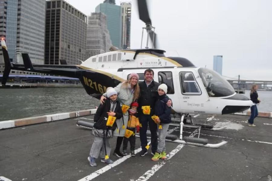 Agustín Escobar y su familia antes de abordar el viaje en helicóptero sobre el río Hudson