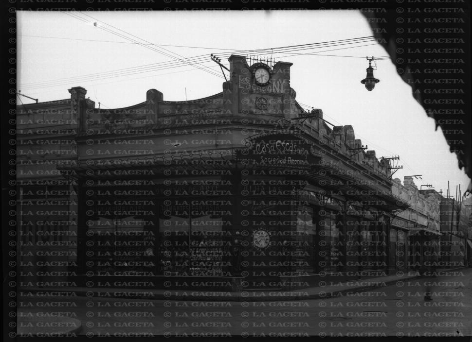 Hay una caja en el archivo de LA GACETA que tiene el rótulo “Edificios”. Apenas se abre empiezan a salir fotos de la esquina de San Martín y Muñecas. Tal cual vimos en otras imágenes publicadas en estos “Recuerdos…” esa intersección siempre fue una zona de gran concurrencia, de tránsito intenso y de transeúntes que van y vienen sin parar. Pasaron los años y ese vértigo no cambió. Pero la imagen que se rescata en esta oportunidad permite ver un edificio que siempre llamó la atención.