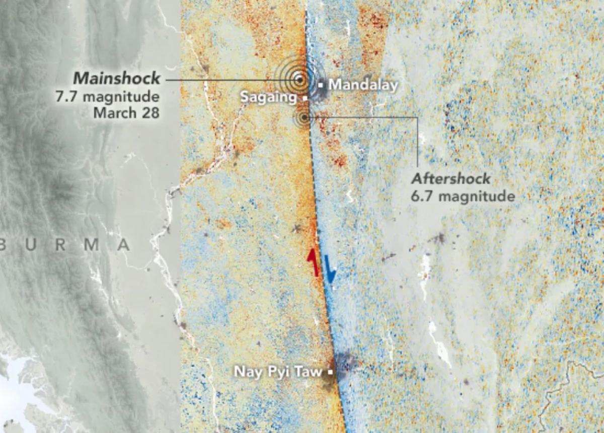 Los sismos que sacudieron a Myanmar fueron catalogados como una secuencia inusual por la comunidad científica debido a la extensión y rapidez de la ruptura de la falla involucrada. Un mes después, la Administración Nacional de Aeronáutica y el Espacio (NASA) ha determinado que estos movimientos telúricos provocaron un desplazamiento del suelo de hasta seis metros en ciertas zonas.