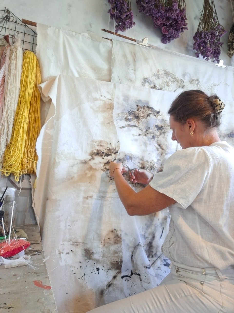 La propuesta exhibe la obra más reciente de la artista, que trabaja con piezas de grandes dimensiones intervenidas con diversas materialidades como brea, ramas y textiles orgánicos e industriales. El bordado acompaña a los gestos pictóricos, en una representación de entornos y territorios vinculados a la yunga junto a superposiciones de géneros textiles intervenidos, se describe sobre sus trabajos. La propuesta apunta a descubrir un espacio para habitar desde la sensibilidad.