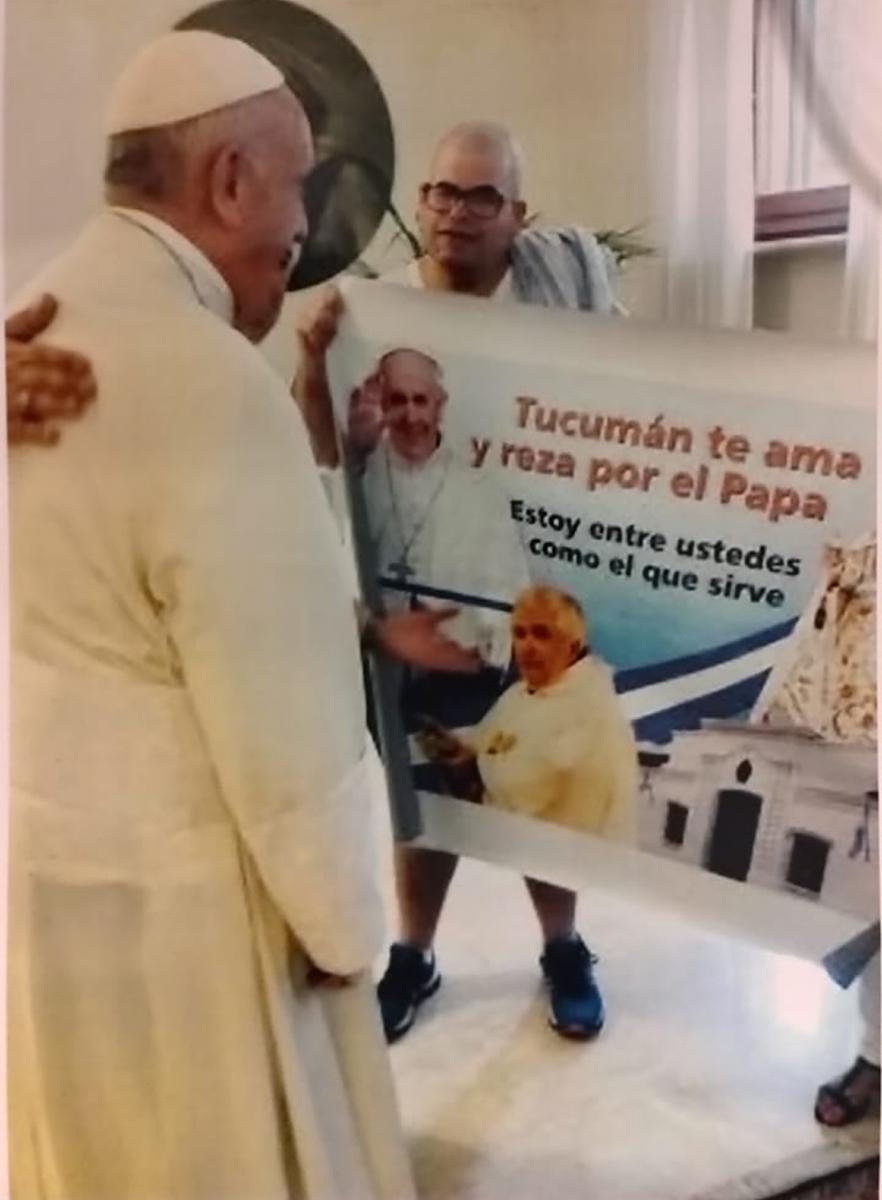 Según Doña, el Papa saludó uno por uno y les regaló un rosario bendecido. Luego recibió dos presentes que había llevado la familia: unos alfajores regionales y varios paquetes de yerba. “Nos dijo que no podía comer cosas dulces, pero nos agradeció el gesto”, cuenta Franco. Después le mostraron un cartel que habían preparado especialmente para la ocasión: “Tucumán te ama y reza por el Papa”, decía la frase, acompañada por las imágenes de Francisco, de Sánchez y de la Casa Histórica. “Era muy sencillo y humilde. Me decía: ‘Hola, chango. ¿Cómo estás, chango?’. Sabía varias cosas de Tucumán”, recuerda.