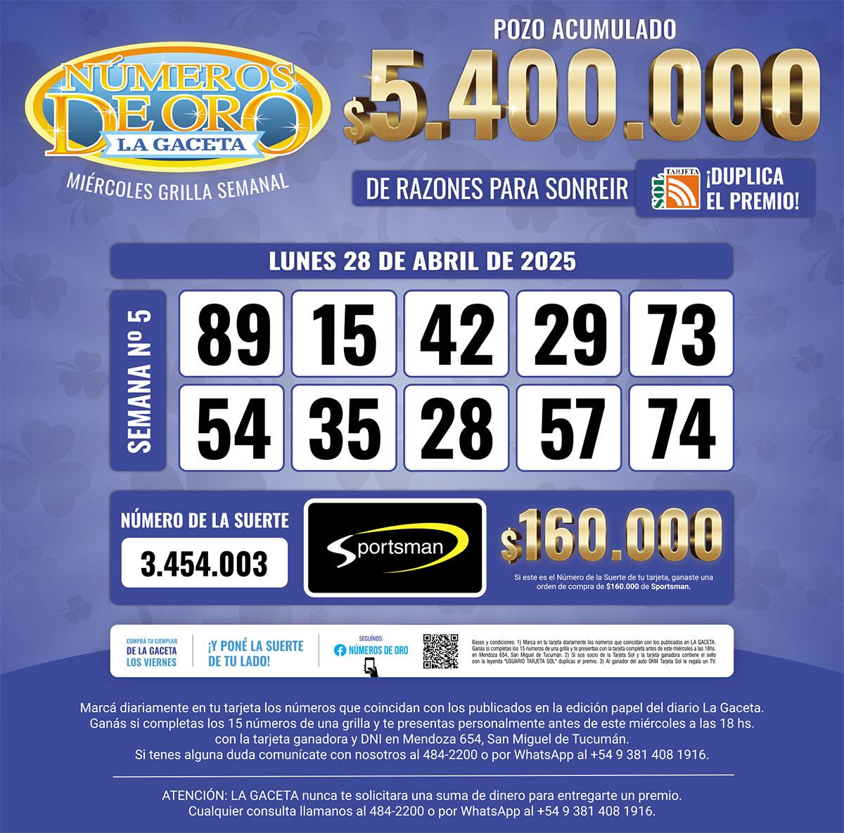 Los Números de Oro de LA GACETA del 28 de abril de 2025