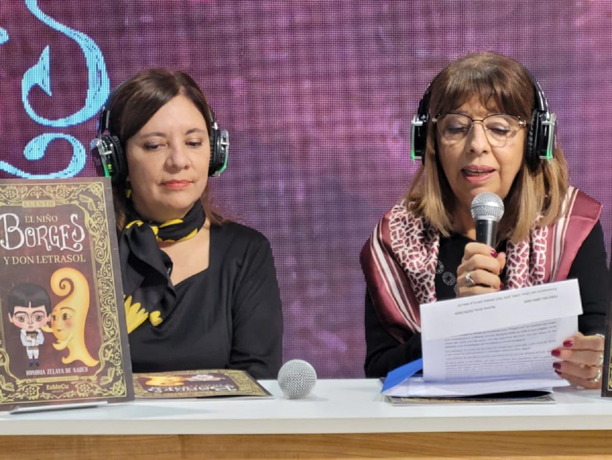 "Esta obra busca despertar el amor por la lectura y acercar a la niñez al conocimiento de Borges, mostrándolo como un niño como ellos, que llora, que 'se chupa el dedo', que le gusta que su abuela le cante canciones de cuna...", destacó Montaldo, acompañada por la directora en Letras del Ente Cultural, Silvia Camuña.