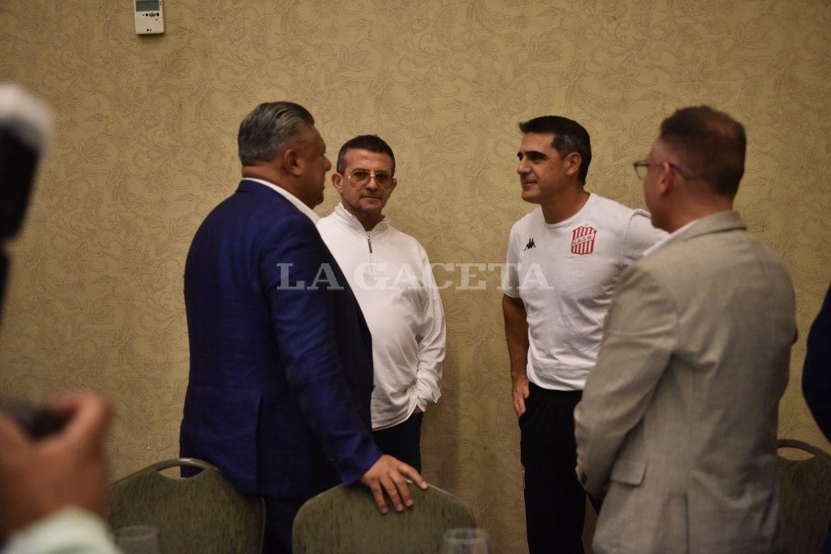 DIÁLOGO. Claudio Tapia habló con los dirigentes de San Martín y con el técnico Ariel Martos. Foto de Osvaldo Ripoll/LA GACETA.