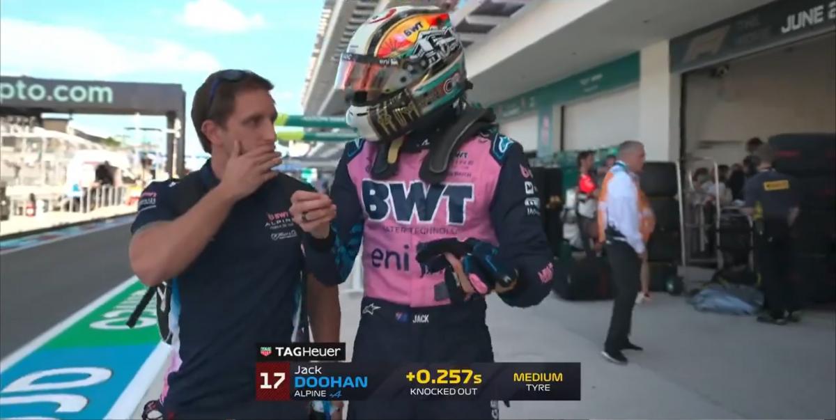 Jack Doohan sigue sin levantar cabeza en la Fórmula 1. En la clasificación Sprint del Gran Premio de Miami, el australiano quedó eliminado en la SQ1 y mañana partirá desde el puesto 17°. Frustrado, Doohan explotó contra los ingenieros de Alpine, ya que no pudo completar un segundo intento de vuelta rápida debido a que salió tarde de boxes.