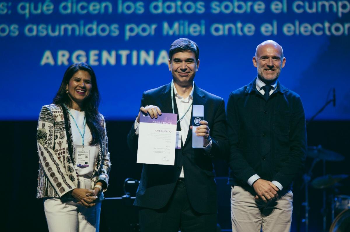 Chequeado fue la otra organización argentina en ser galardonada. En su caso, en la categoría “Mejor proyecto de Fact-Checking” por un relevamiento de las promesas de campaña de Javier Milei que alcanzó más de un millón de vistas y se convirtió en una sofisticada herramienta de fiscalización ciudadana. Daniel Dessein, representante argentino en la junta asesora de Wan-Ifra, recibió el premio en nombre de la organización que dirige el periodista Franco Piccato. Los detalles del trabajo pueden verse en este video: https://www.youtube.com/shorts/IUJjXfVXzts