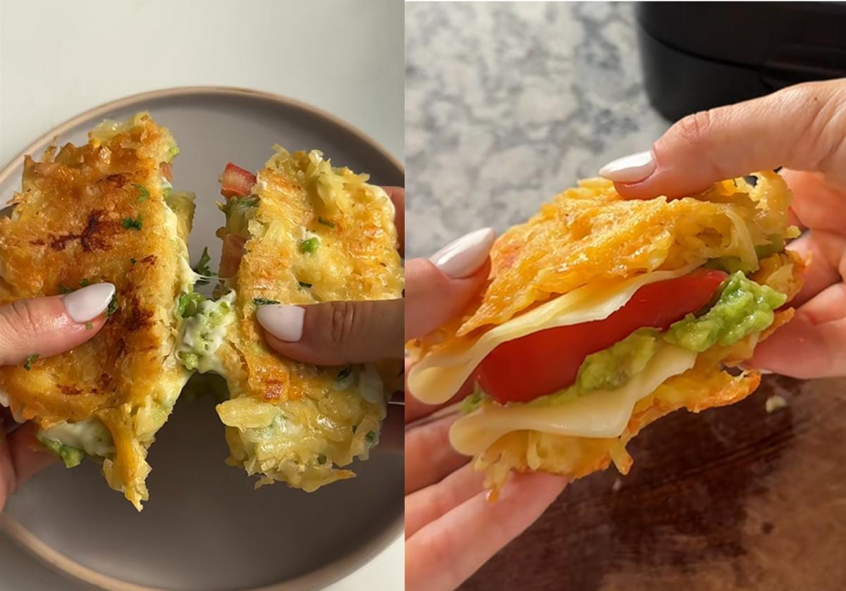 Este sánguche de papa y queso puede tostartse para un acabado más crujiente.