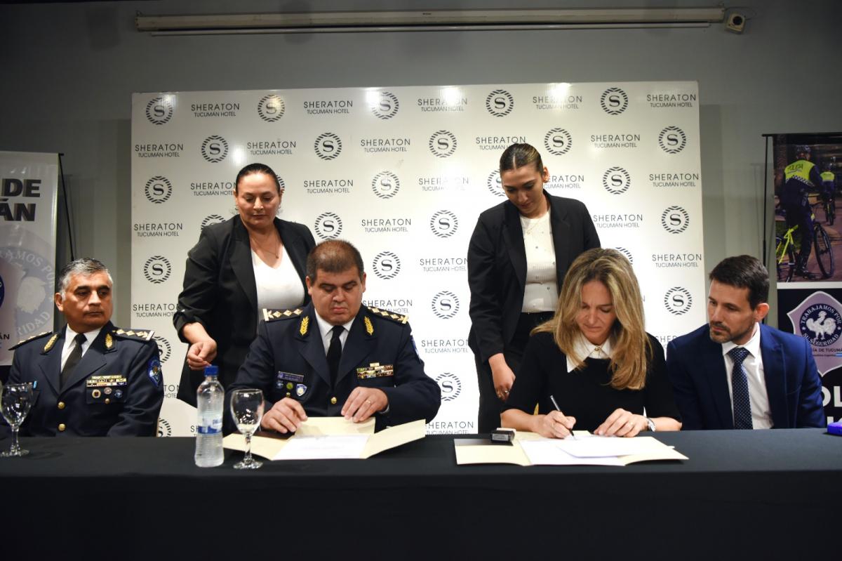 Esta mañana se concretó la firma de un convenio de servicios entre la Policía de Tucumán y el hotel Sheraton, ubicado en la zona del parque 9 de Julio. La medida contempla beneficios tanto para los 12.100 efectivos en actividad como para el personal retirado.