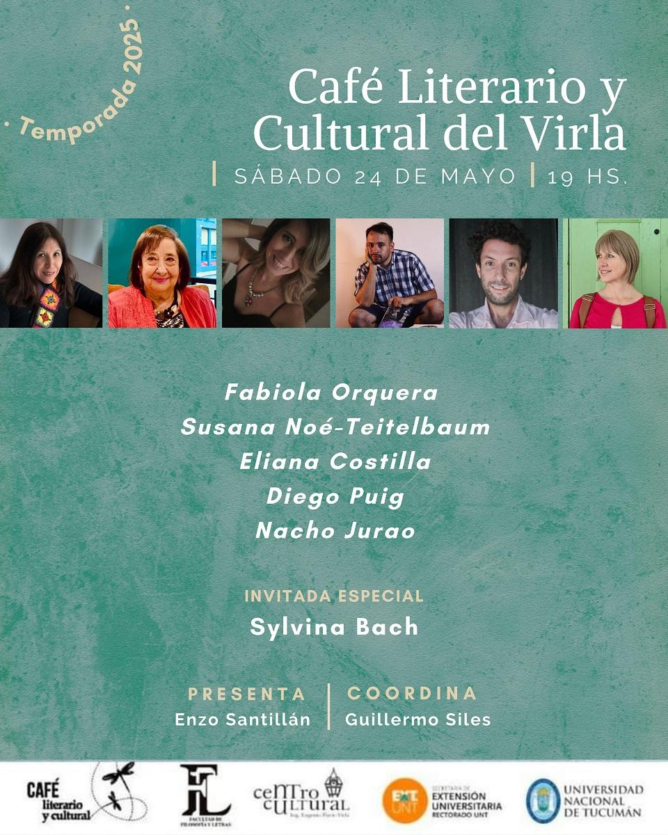 Este sábado 24 de mayo a las 19 horas, el Espacio Cultural Virla de la Universidad Nacional de Tucumán será escenario de un nuevo encuentro del Café Literario y Cultural, un ciclo que celebra la palabra escrita, los cruces poéticos y el intercambio entre generaciones y territorios. Con entrada libre y gratuita, el evento contará con la participación de destacadas figuras del ámbito literario del NOA y una invitada especial: la poeta Sylvina Bach.