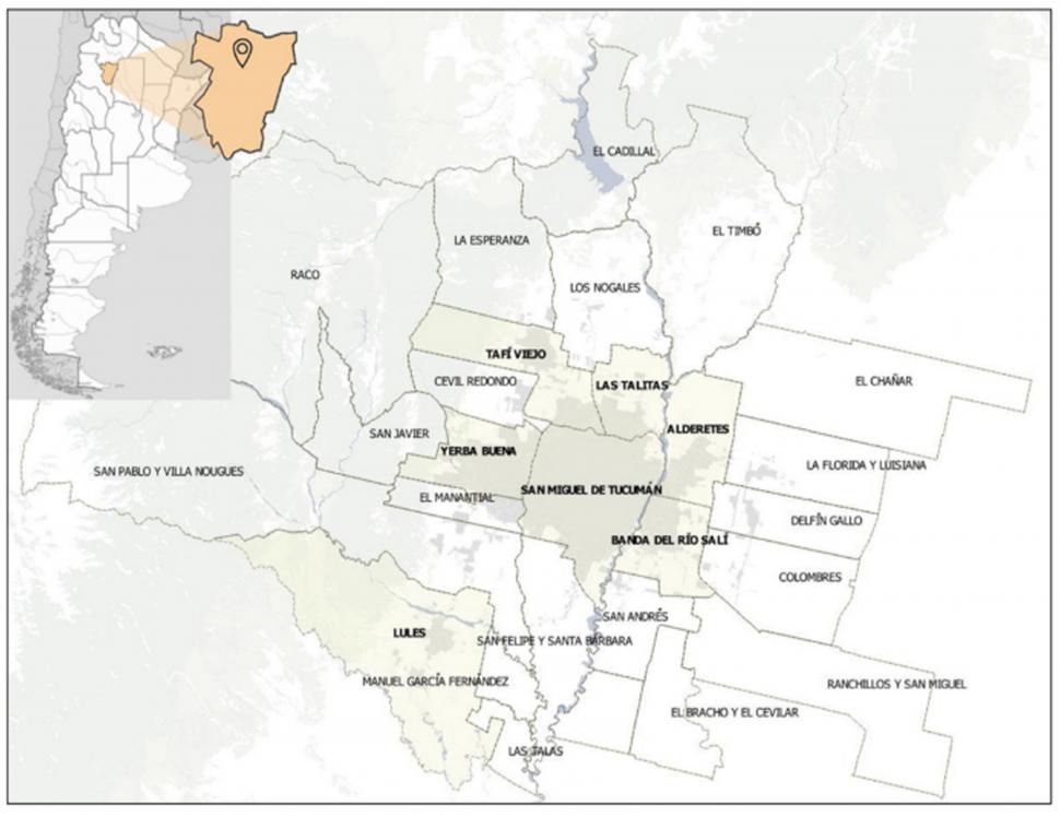 IMPORTANTE ESTUDIO. El mapa actualizado es una elaboración de Inés González Alvo con base a LEM-DAMI (2016) e información disponible en Infraestructura de Datos Espaciales Tucumán (IDET).