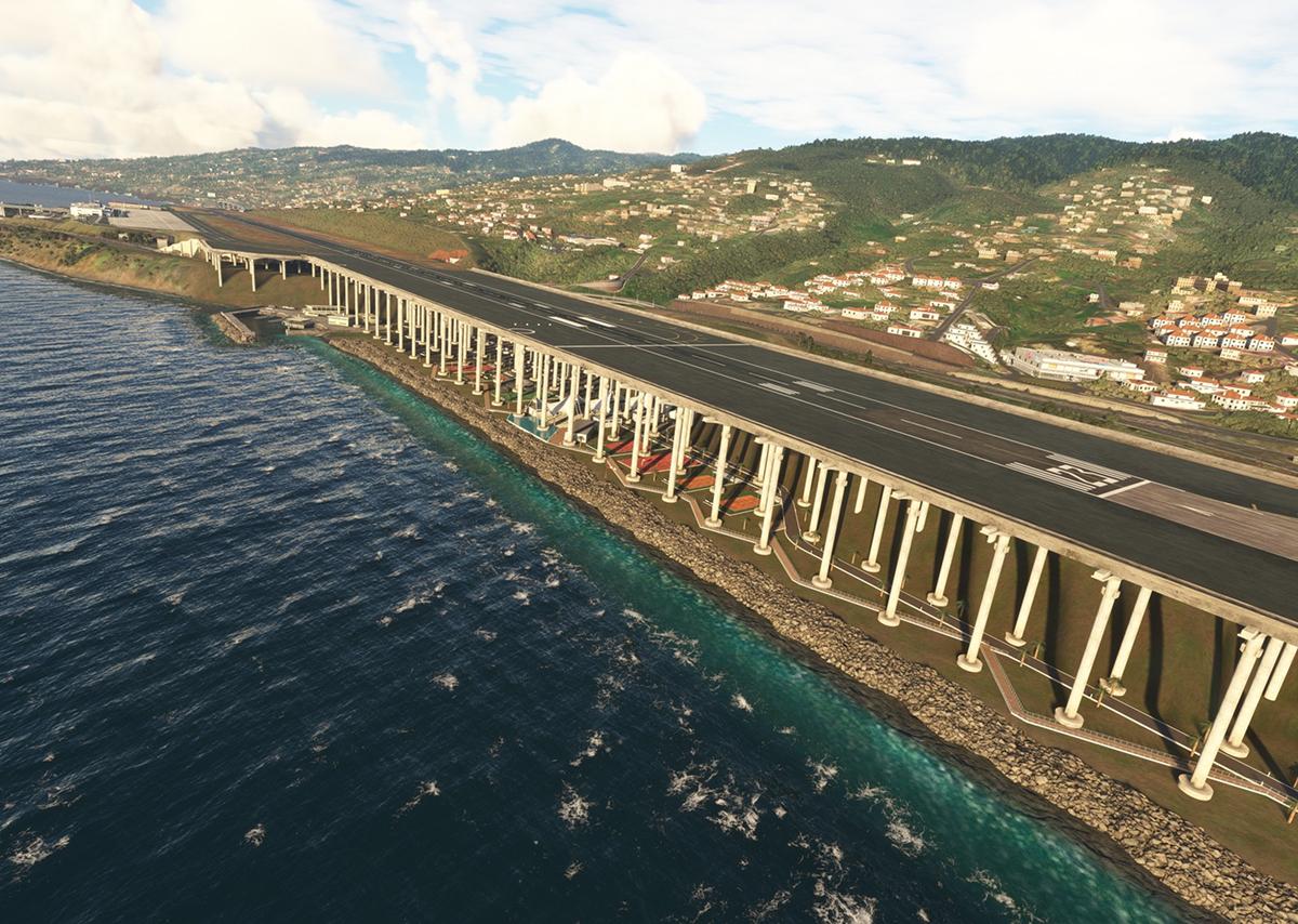 El Aeropuerto de Madeira en Portugal, donde los fuertes vientos cruzados pueden hacer que los aterrizajes parezcan más como navegar que volar. La pista, que sobresale sobre el océano, está apuntalada por una serie de pilares de hormigón, lo que añade dramatismo cuando el viento empieza a aullar.