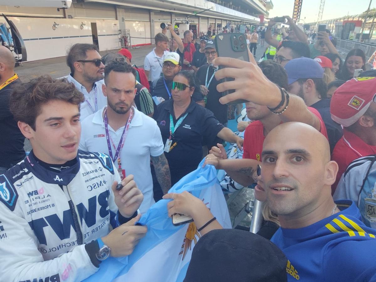 Para su beneficio, "Colapa" encaró hacia otra persona que estaba al lado de él. El piloto se acercó con total naturalidad al grupo, incluso pasó una de las cintas demarcadoras y se aproximó más de lo normal. Firmó banderas, entradas y a Marques Pelizza le recibió el regalo. "Feliz cumpleaños Franco", repitió dos veces. "Alfajores Franco", le dijo mientras el pilarense recibía la caja. Colapinto le dijo lo que desde que saltó a la fama, no cambió porque lo tiene incorporado. "Uuuuu boludo", respondió mirándolo y con los ojos que se abrieron un poco más. "Genio", agregó. A los alfajores se los entregó a uno de los mecánicos del equipo porque siguió durante unos minutos en contacto con la gente.