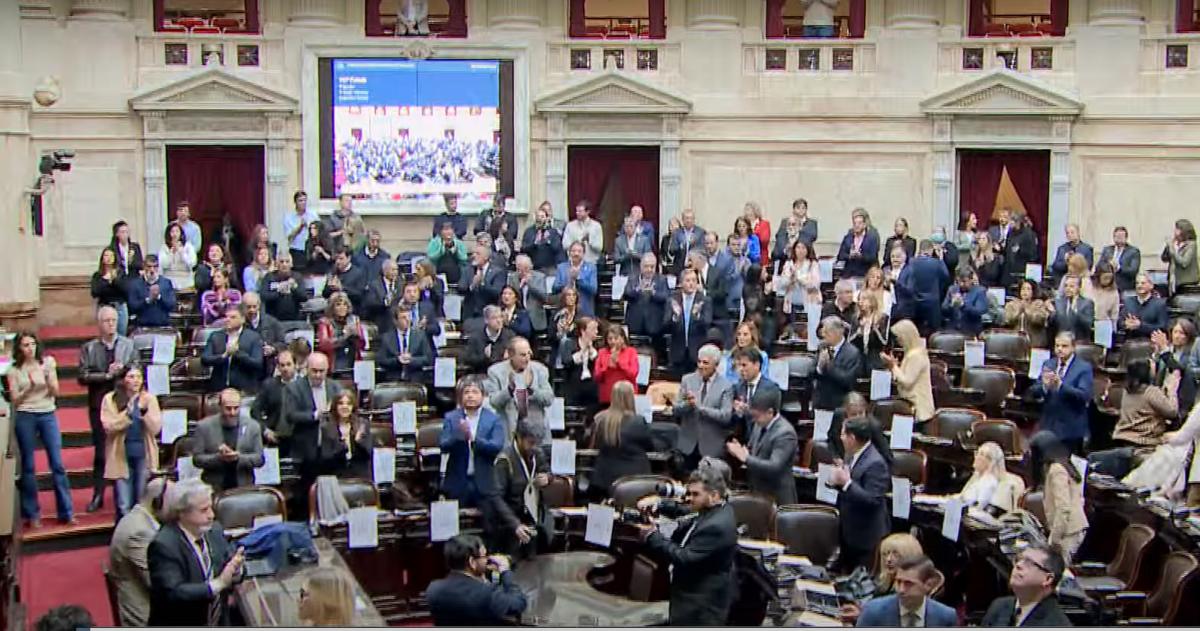 El debate en el recinto se desarrolla en medio de una multitudinaria movilización frente al Congreso de la Nación, que incluye al personal del Garrahan por la crisis institucional que atraviesa, así como a pacientes, familiares, prestadores y profesionales vinculados a la red de discapacidad. Además participan sectores de jubilados y diversas organizaciones sociales y políticas.