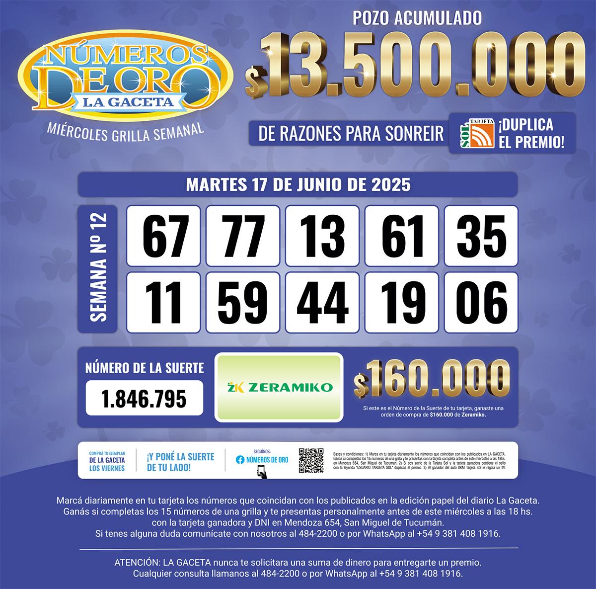 Los Números de Oro de LA GACETA del 17 de junio de 2025