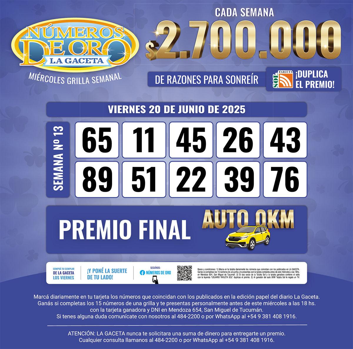 Los Números de Oro de LA GACETA del 20 de junio de 2025