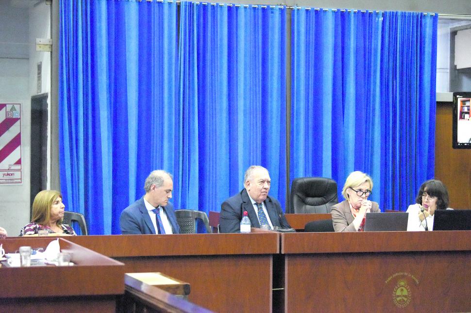 La audiencia estuvo presidida por los miembros subrogantes del Tribunal Oral Federal, Jorge Basbús y Ana Carina Farías, de Santiago del Estero, y Enrique Lilljedahl, de Catamarca, quienes participaron vía zoom, al igual que los acusados, Luis Sacca y Osvaldo Venturino, y los abogados defensores Silvia Peyrachia y Rosa Luz Casen, Alfredo Falú, Víctor Taleb y Pamela Tenreyro. Estuvo presencialmente el querellante Patricio Esperguín.