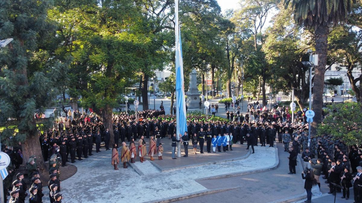 Día de la Bandera: así fue el emotivo izamiento en una plaza Independencia colmada de celeste y blanco