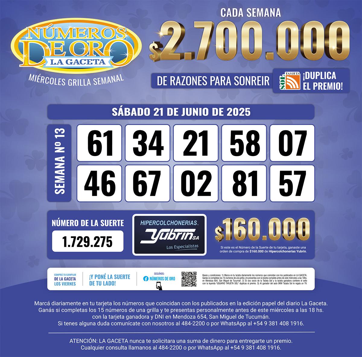 Los Números de Oro de LA GACETA del 21 de junio de 2025