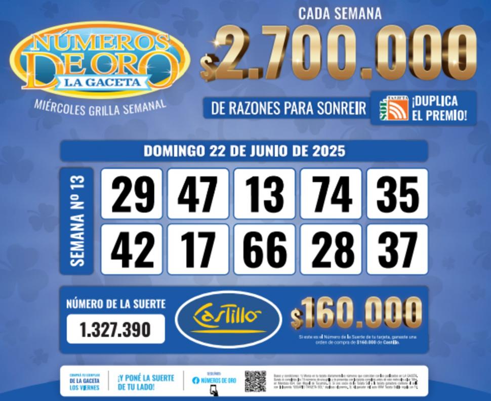 Los Números de Oro de LA GACETA del 22 de junio de 2025