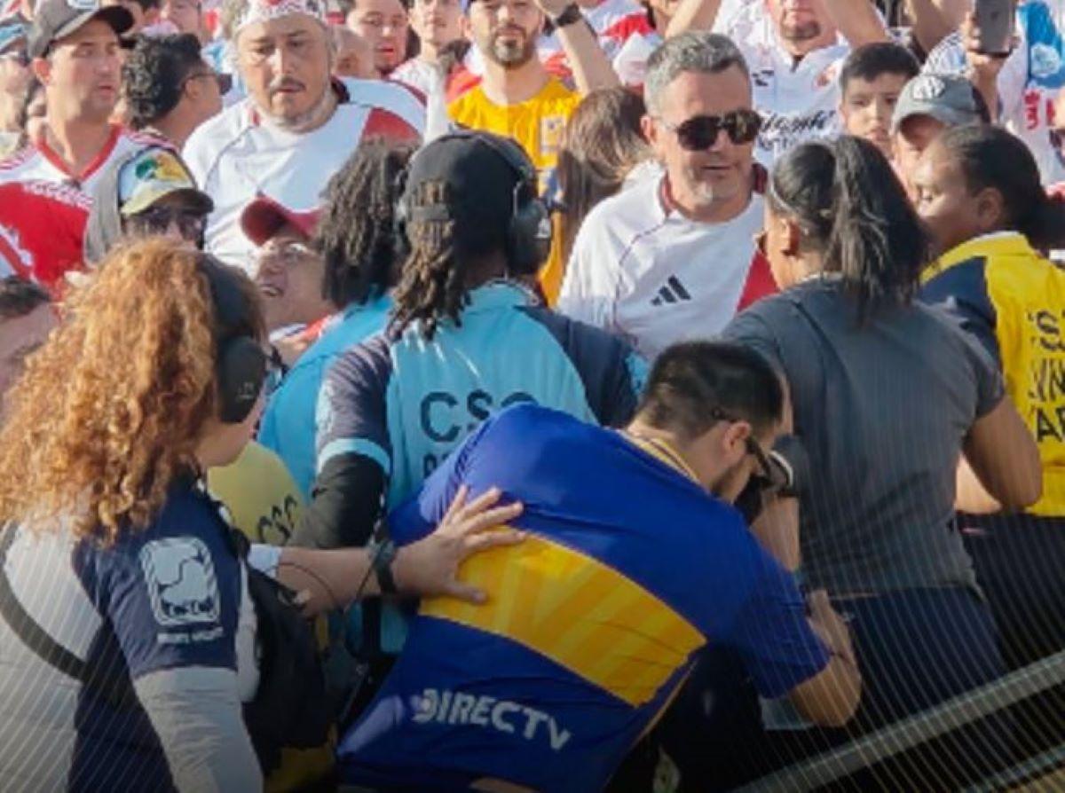 CONTENIDO. El simpatizante "xeneize" fue escoltado para poder salir de la tribuna.