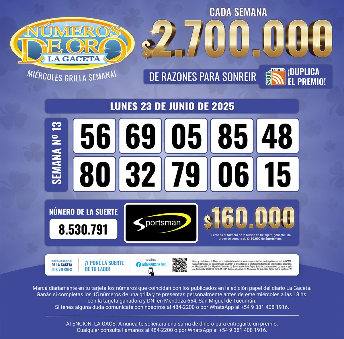 Los Números de Oro de LA GACETA del 23 de junio de 2025