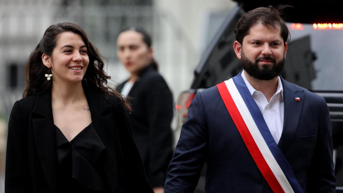 Gabriel Boric, presidente de Chile, y su pareja, Paula Carrasco. FOTO/T13.CL.