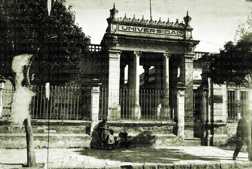 La imagen que Jorge Olmos Sgrosso ha seleccionado corresponde al edificio de la Universidad Nacional de Tucumán (actual sede del Rectorado) hacia mediados de la década del 20, tomada del Archivo General de la Nación. Se ven unos niños en la amplia vereda, apoyados junto a la verja. Con la entrada por calle Ayacucho al 400, casi igual a hoy. Es una construcción de comienzos del Siglo XX para Consejo de Higiene de la Provincia de Tucumán, entregado para el comienzo de la UNT en 1914. Juan B. Terán lo describió como “uno de los edificios públicos más bellos de la ciudad y más adecuado para nuestros fines”, según cuenta Carlos Páez de la Torre (h) en su biografía del fundador de la Universidad.