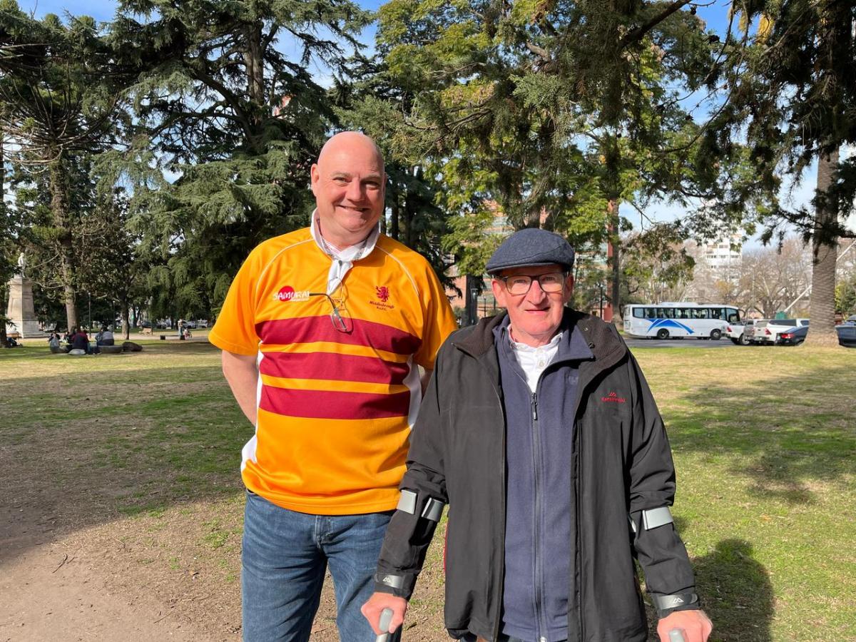 Peter lo escucha con una sonrisa. Él y Maca se conocen desde los años 80, cuando Maca trabajaba en un pub al que Peter iba siempre. “Compartíamos la pasión por el fútbol. Después, poco a poco, sumamos la del rugby. Y ahora viajamos por el mundo siguiendo el deporte”, comenta.