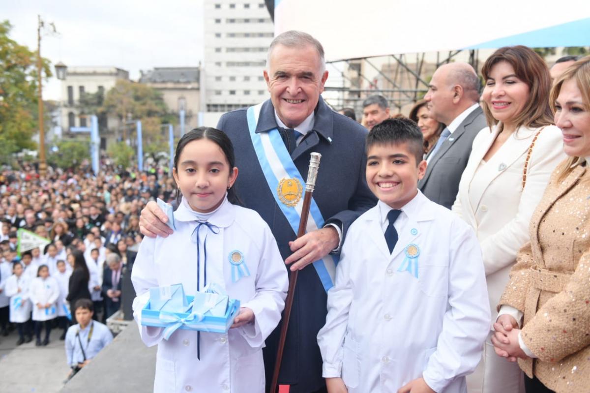 Frente a la Casa de Gobierno, dos pequeños protagonistas se robaron todas las miradas durante el acto por el 9 de Julio. Sabrina y Alejandro, alumnos de la escuela El Chañar, dejaron sin palabras al público con sus discursos patrios llenos de emoción.