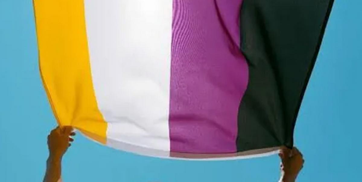 Algunas personalidades famosas como Demi Lovato, Ezra Miller, Sam Smith, Bella Ramsey y Elliot Page ya se han declarado como personas de género no binario. Así como los colores arco iris de la bandera de la comunidad LGBTQ+, la comunidad no binaria tiene su propia bandera, es rectangular y presenta cuatro franjas horizontales en colores que no son de género tradicional: amarillo, blanco, púrpura y negro.